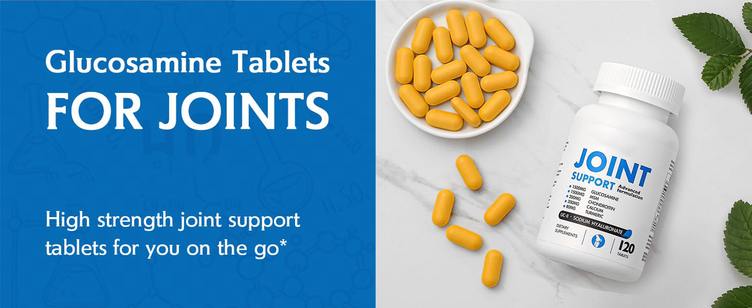 Glucosamine 500mg, MSM 500mg, Chondroitin Sulfate 67mg, Turmeric27mg, Collagen UCIl 1.1mg, Hyaluronic Acid 1.1mg, Calcium 67mg.