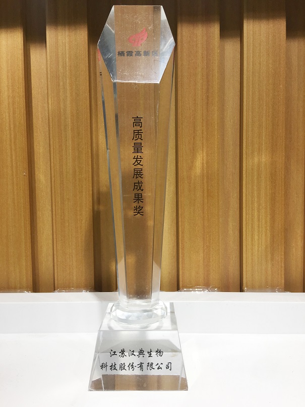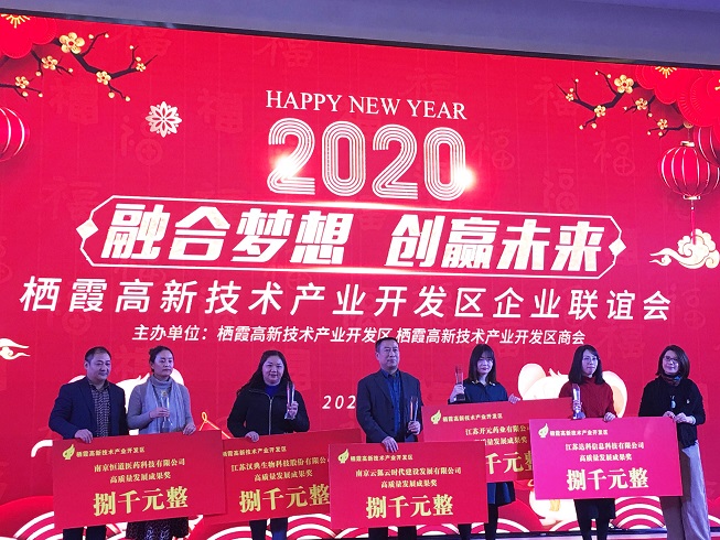 2020年1月16日,由栖霞高新技术产业开发区主办的“融合梦想.创赢未来”2020栖霞高新区新春企业联谊会在紫东生态会议中心举行,作为栖霞高新区的企业代表,江苏汉典生物科技股份有限公司出席了本次联谊会。并在此次联席会上获得栖霞高新区颁发的“高质量发展成果奖”。