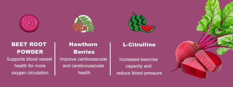 Beet Root Powder:500mg Hawthorn Berries:400mg (from 10:1 Extract) L-Citrulline:50mg |